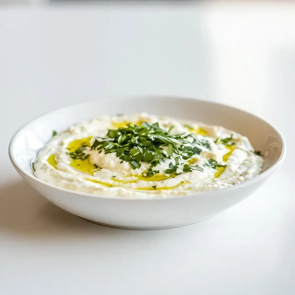 Dip de queso y yogurt con balsámico cebolla dorada y pecanas con chips de pan pita
