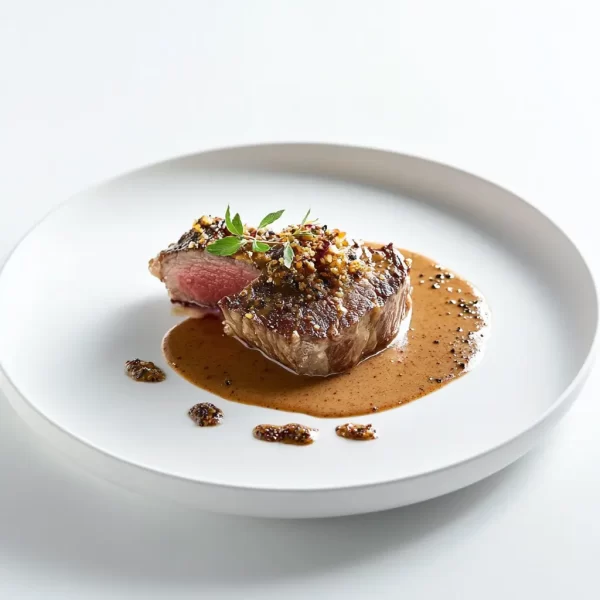Filete con costra y salsa cremosa de chile pasilla