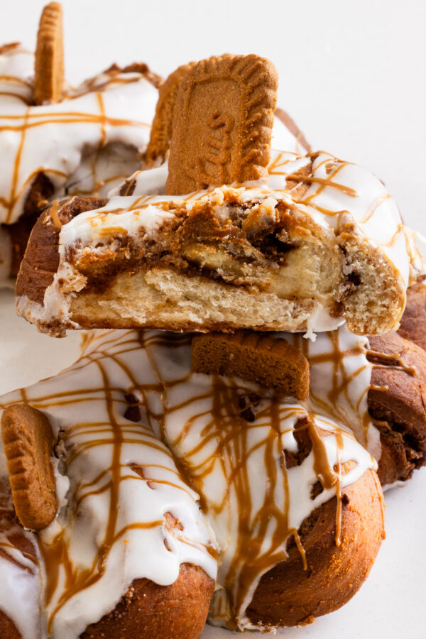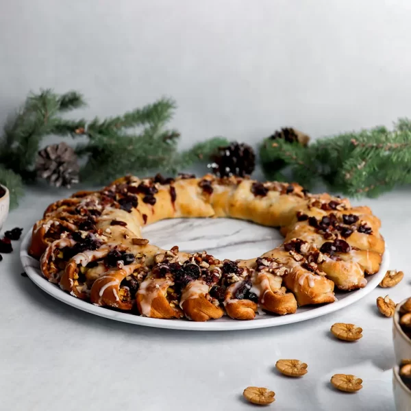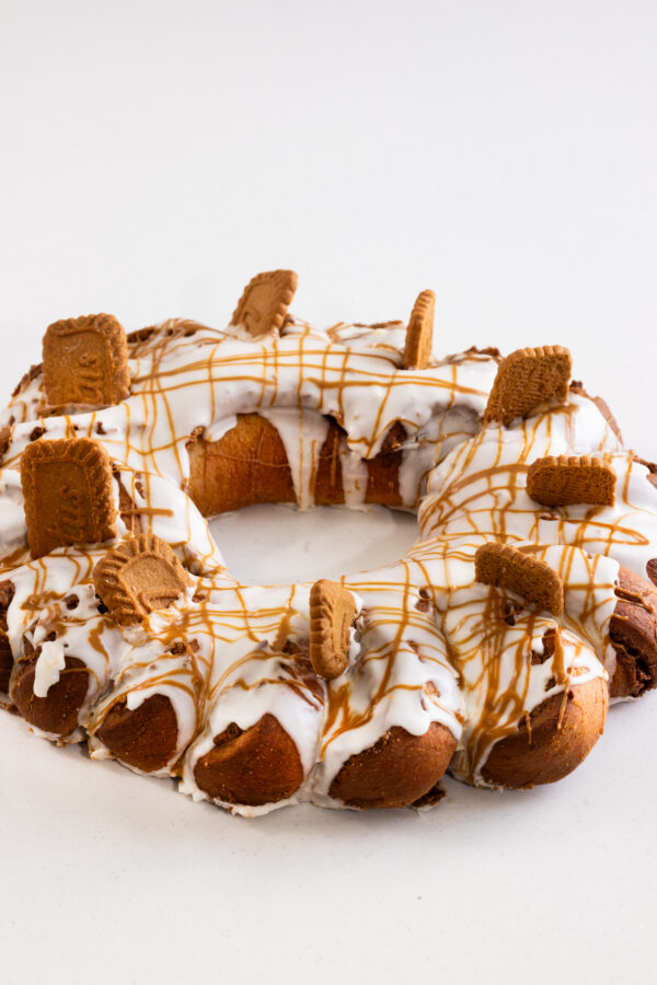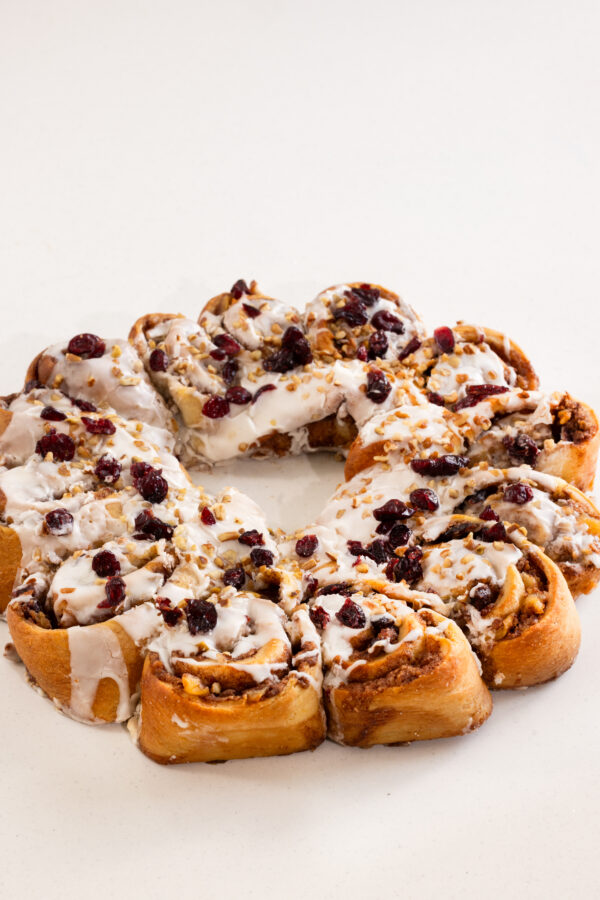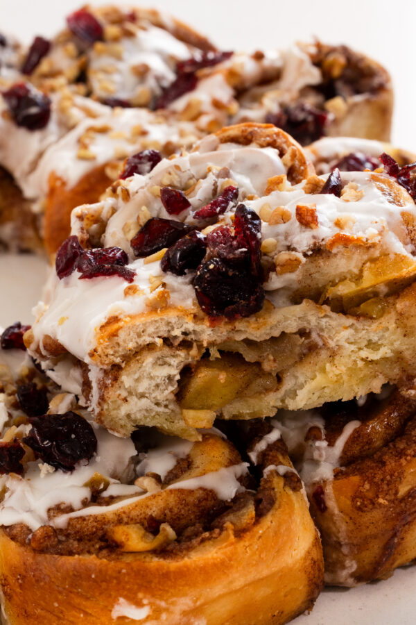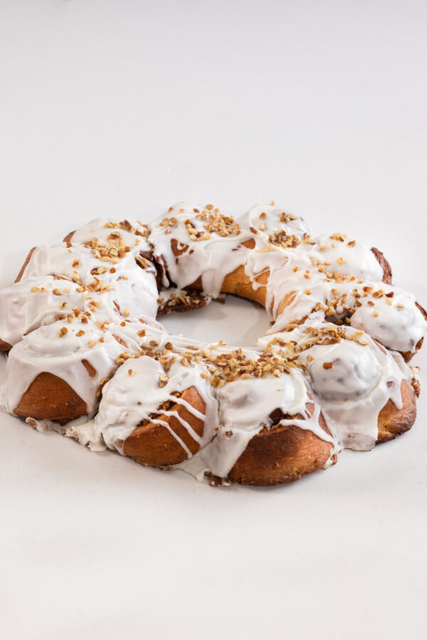 Rosca basada en roles de canela, nuez pecanas y manzana (opcional)
